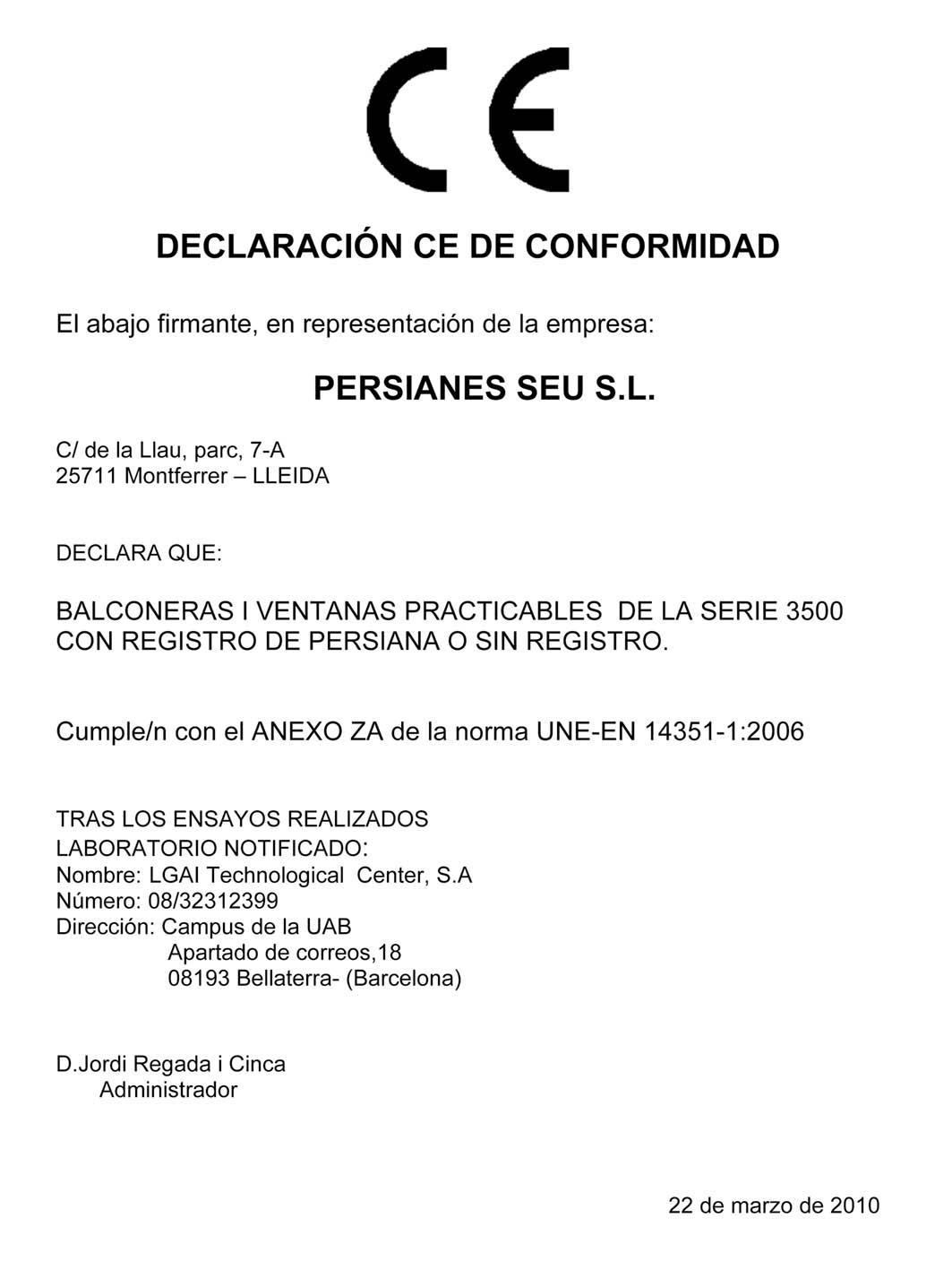 The CE marking applies to all window manufacturers in the European Union, and is mandatory from February 2010. Cloustek has not been left behind, and complies with the UNE-EN 14351-1 which affects the production of all manual or motorized windows, exterior doors and roof windows.